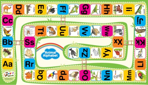Mata edukacyjna „Animal Alphabet” pozwala wprowadzić dzieci w świat brzmień anglojęzycznych. Skacząc po macie dzieci poznają litery w języku angielskim, wzbogacając własny zasób słownictwa, a przy tym: