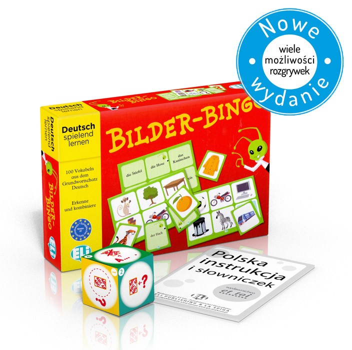 Bilder-Bingo jest grą językową służącą do nauki słownictwa niemieckiego. Gra bazuje na skojarzeniach słów z obrazkami i polega na dopasowywaniu wylosowanych kart z nazwami przedmiotów do ich odpowiedników na ilustracjach oraz na odwrót.