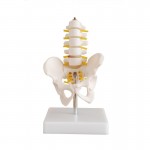 Mini miednica z pięcioma kręgami lędźwiowymiModel zawiera kość biodrową, kość krzyżową z kością ogonową oraz pięć kręgów lędźwiowych. Model stojący.