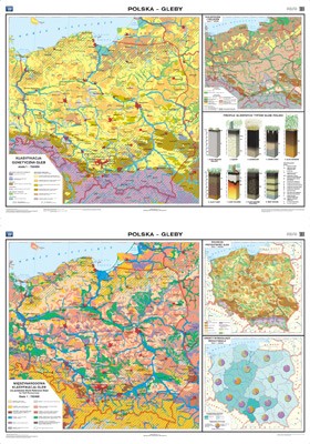 * mapa główna przedstawia rozmieszczenie typów genetycznych gleb na obszarze Polski; na mapie pomocniczej w skali 1:1 500 000 pokazano rolniczą przydatność gleb; uzupełnieniem publikacji jest dziewięć profili głównych typów gleb występujących w Polsce