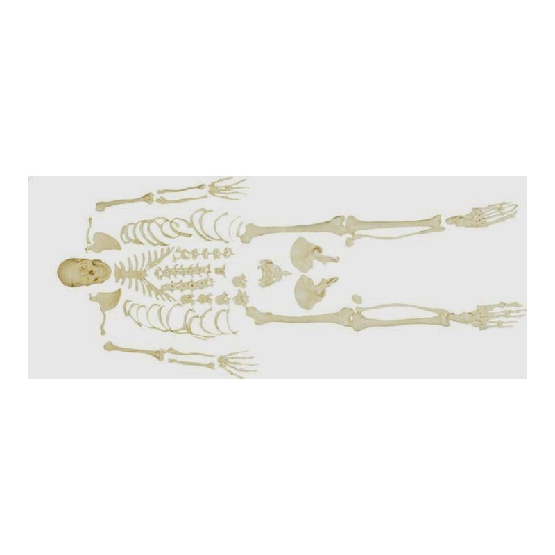 Rozłączony szkielet z czaszkąJest to szkielet dorosłego człowieka realnego rozmiaru, rozłączony. Model zawiera 3 częściową czaszkę oraz prawą rękę i nogę umocowaną na drucie.